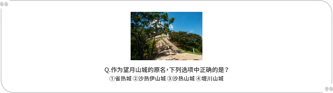 这里是位于南汉江江边望月山(373米)山顶的石筑城遗址,现在属于堤川文化遗产园区的顶峰,可以远眺清风湖的秀丽美景并参观文化遗产。包括汉江水路在内,望月山城的视野极佳,在高句丽、百济、新罗的战略要地中原也发挥着极强的影响力。上面问题有回答正确的朋友吗?(任命您为堤川市百事通。)没错,正确答案就是①②③。这些名称按顺序分别指代百济时代、高句丽时代,统一新罗时代后的望月山城。除证明该地竞争激烈外,还发现了所有三国的筑城特点,是研究三国时代筑城方法的重要考证资料。